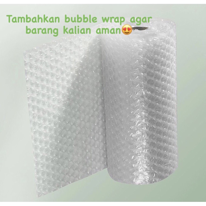 Tambahkan ke cart untuk 1 bubble wrap = untuk per 1 item yg di beliSemua pengiriman dari kami selalu menyertakan lapisan pelindung bubble wrap dengan lapisan standard.Untuk keamanan paket bisa menambahkan EXTRA BUBBLE untuk menjaga benturan keras dalam pengiriman terutama untuk jenis produk yang mudah pecah, sensitif pada tekanan, untuk meminimalisir kerusakan pada pengirimanKelalaian akibat pengiriman diluar tanggung jawab kami, dan kami tidak terima komplen jika barang rusak selama perjalanan oleh kuri