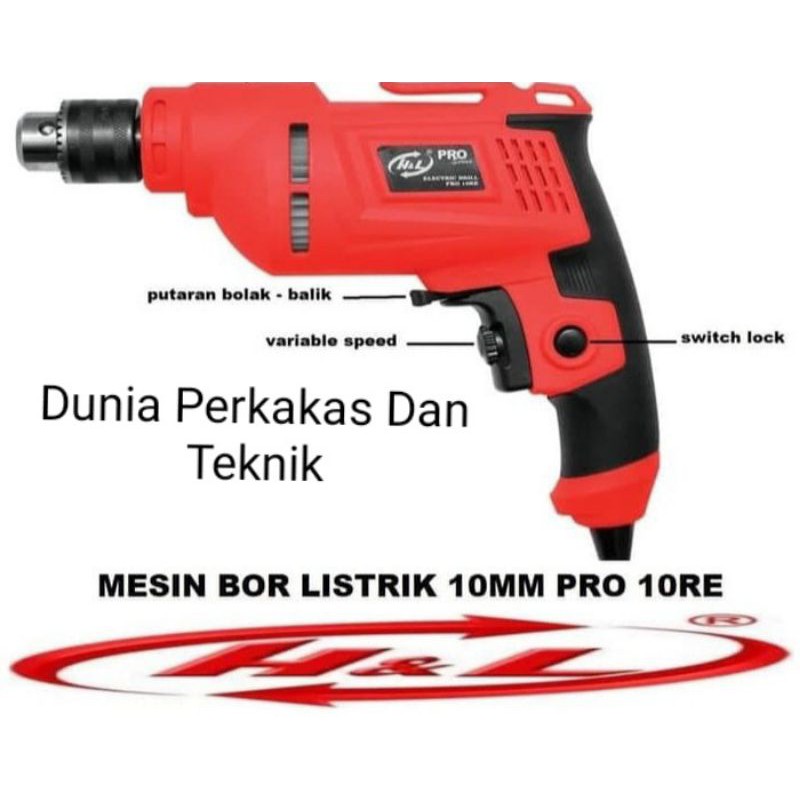 bor H&L berkualitas suara mulus halusbisa bolak balik dan speed bisa untuk bor kayu ,besi,baja,atrilic,kaca,keramik,tembok,no beton dll.*ukuran bor 10 mm*putaran 0~3000r/min*400 wat*50~60 Hz*220 V