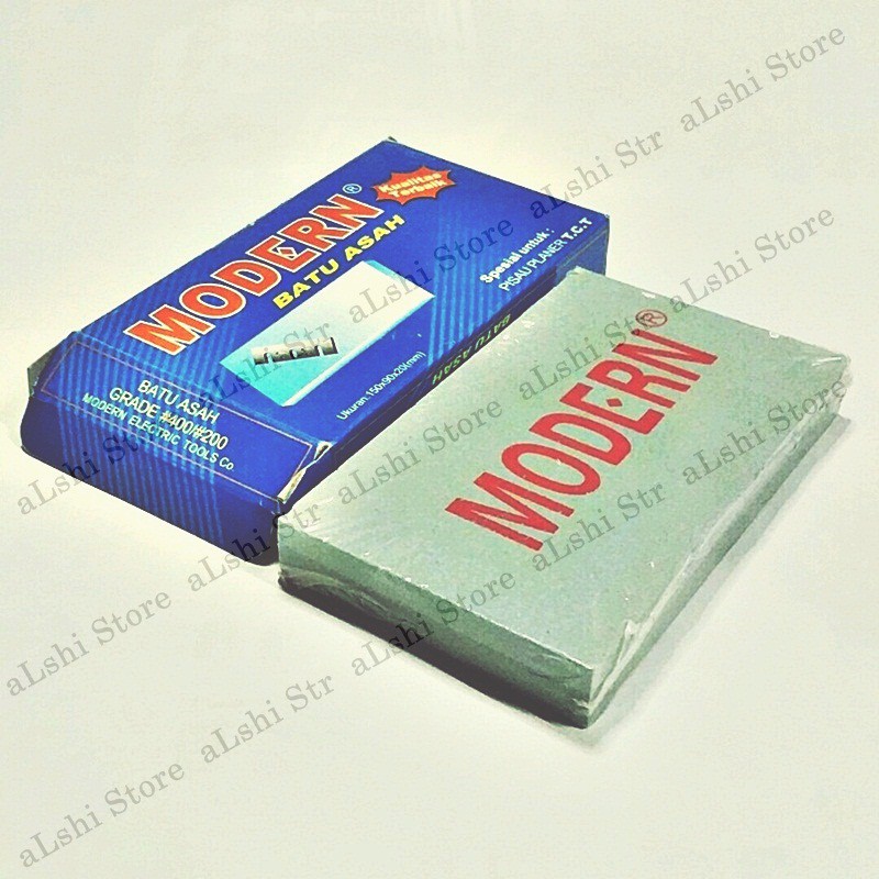 MODERN Batu asah 2 warna hijau muda (grade 400) dan hijau tua (grade 200) Spesial untuk Pisau planer tct Dimensi = 150 x 90 x 20 mm Note : Sebelum dikirim akan dicek kondisinya tidak pecah/retak (kemasan akan diusahakan sebaiknya), tidak bisa komplain atau tukar atau kembali/retur. terima k