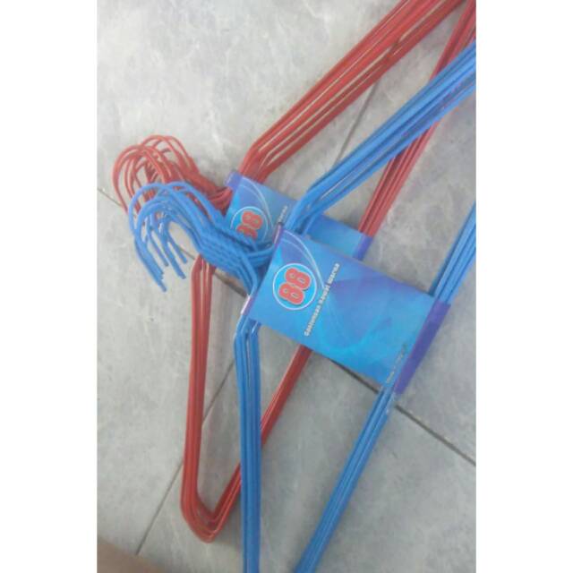 Gantungan kawat warna tidak mudah karat karna sudah dilapis sehingga gantungan lebih awet dan tidak meninggalkan noda kawat pada baju anda. Pilihannya terdapat warna biru dan orange. Tetapi kami pilih warna sesuai stock yang ada.Selamat berbel
