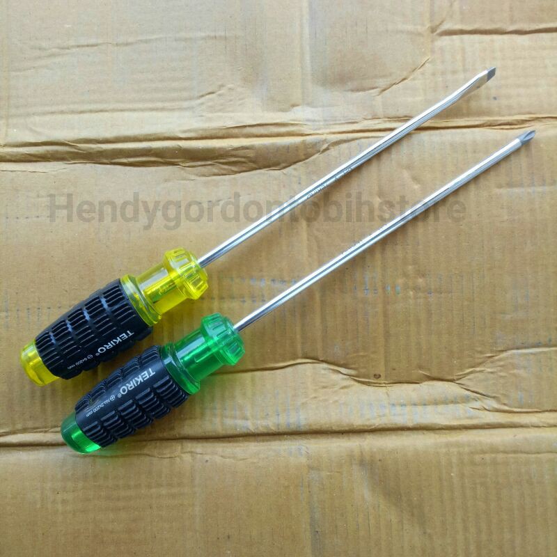 Obeng gagang karet 2pcsmerk:TEKIROUkuran:200mmharga untuk 2 obengsepasang min dan plusProduk ori TE