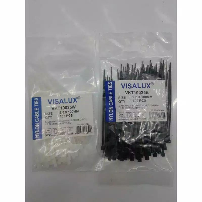 kabel ties atau pengikat kabel merk Visalux, bahan baguscocok untuk mengikat kabel sehingga rapih, mengikat banner dll spy tdk mudah putus.juga cocok utk mengikat kresek / kantong plastik saat mengantar makanan sehingga terjamin kebersiha