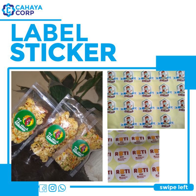 Cetak Label Sticker KemasanCustom size & DesignUkuran kertas Sticker 27x70cmKalau di Gambar Ukuran 5x5 cm dapat 65 stickerKemasan Produk mu polos? Udah gak jaman!Cetak Sticker Gak ada satu Hari udah j