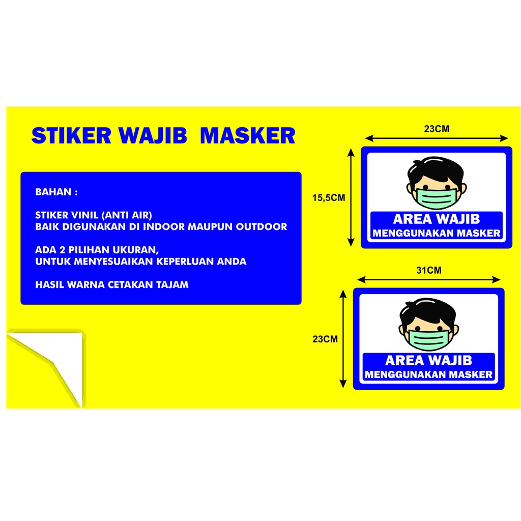 STIKER WAJIB MEMAKAI MASKERSEBAGAI PETUNJUK UNTUK MEMAKAI MASKER DI AREA INIBAHAN :STIKER VINIL (ANTI AIR)HASIL CETAKAN TAJAMADA 2 PILIHAN UKURAN, SESUAIKAN DENGAAN KEBUTUHAN